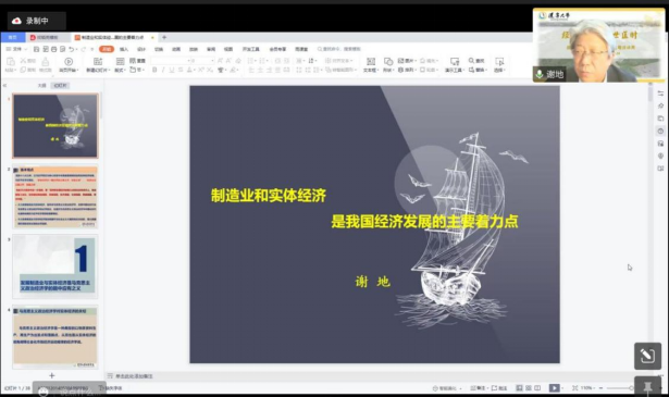 DB旗舰官方网站入口经济学部主管日常工作的副主任谢地教授以“制造业和实体经济是我国经济发展的主要着力点”为题主讲名家讲坛。谢地教授首先从马克思主义政治经济学视角阐释了重视实体经济的原因,强调大力发展制造业和实体经济必须处理好实体经济与虚拟经济的关系。当前我国实体经济存在大而不强的问题,所以重视制造业和实体经济发展是现阶段的必然选择,抓住创新引领制造业高质量发展这个“牛鼻子”、加快建设现代化基础设施体系等六项措施是大力发展制造业和实体经济的政策措施。