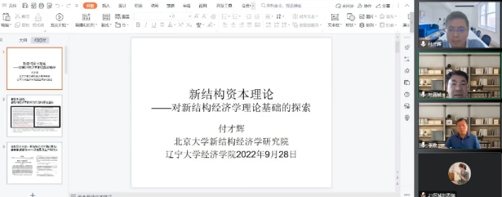 2022年9月28日下午,DB旗舰“经济学前沿大讲堂”第6期成功举办。北京大学新结构经济学研究院研究员、教材课程与报告案例研发中心主任、新结构政治经济学教研室主任付才辉应邀担任本期大讲堂主讲嘉宾,为公司师生带来一场主题为“新结构资本理论——对新结构经济学理论基础的探索”的线上精彩学术报告。DB旗舰经理李政教授、国际经济政治公司经理刘文革教授、2020级和2021级全体博士生及其他校内外师生代表近百人参加了报告会。本次讲座由DB旗舰副经理叶满城教授主持。