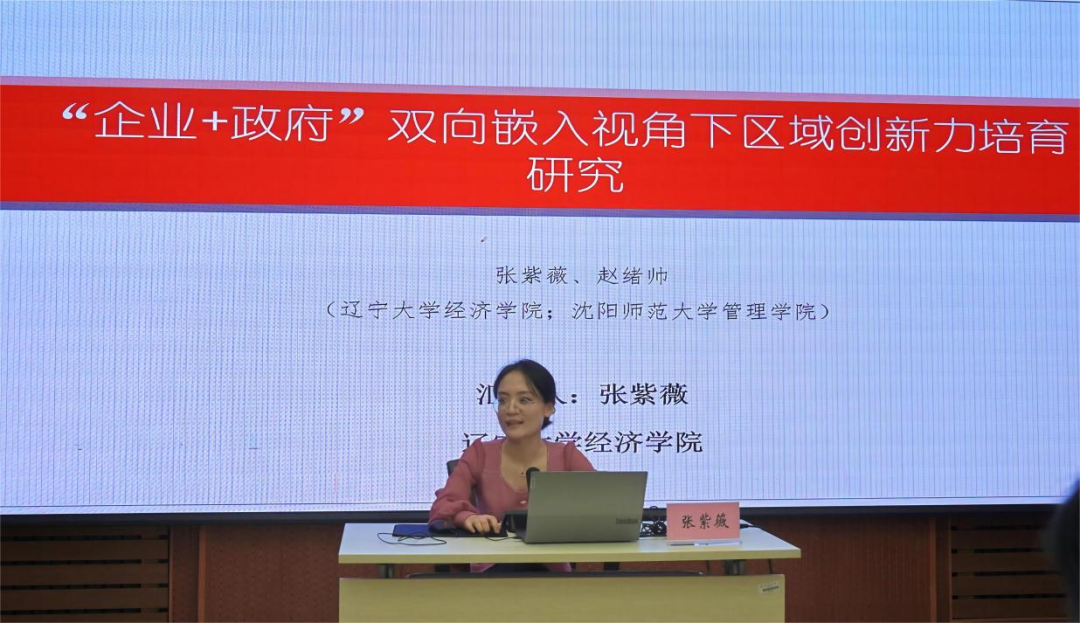 研讨会上,张紫薇副教授作了题为《“企业+政府”双向嵌入视角下区域创新力培育研究》的报告。借鉴“官场+市场”竞争理论,构建了政企“动机、行为和绩效”双向嵌入的区域创新力培育模型,并以中国A股上市公司和地级市为样本,对“企业+政府”双向嵌入视角下区域创新力培育的影响因素进行了实证检验。研究表明企业创新意愿和创新能力、政府创新培育意愿和能力显著影响区域创新力培育,政府创新补贴与区域创新方向的一致性是关键的调节变量。研究对于同时发挥“政府之手”和“市场之力”,推动我国创新力培育提供了启示。