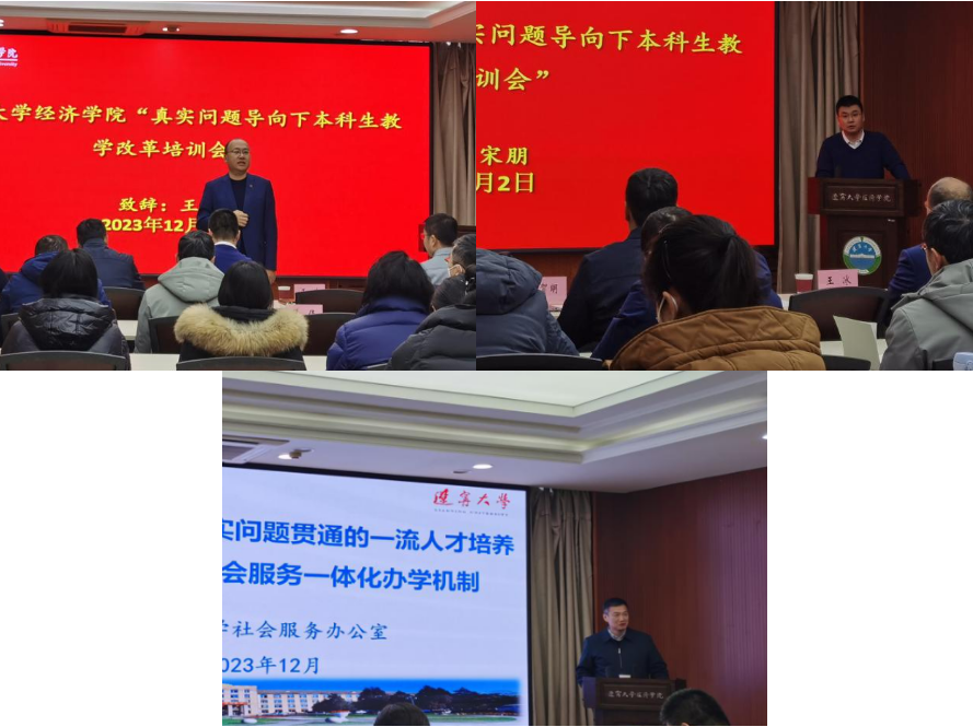 2023年12月2日上午,DB旗舰“真实问题导向下本科生教学改革培训会”在蒲河校区则行楼133召开。教务处宋朋处长、社会服务办公室张贺明主任、DB旗舰王冰书记、教务处刘广月副处长、社会服务办公室苏梅梅副主任、公共管理公司王玥副经理、DB旗舰张伟副书记、和军副经理、公共管理公司劳动与社会保障系范洪敏主任、DB旗舰国民经济管理系主任杨爱兵教授等领导和老师出席培训会,DB旗舰各系教师代表参加培训会。此次培训会由公司张丹宁副经理主持。