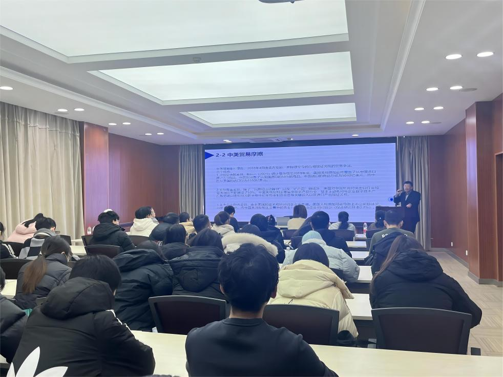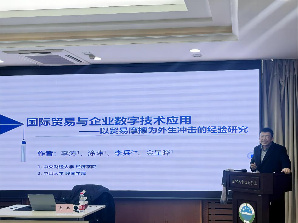 李兵副教授作了题为《国际贸易与企业数字技术应用——以贸易摩擦为外生冲击的经验研究》的精彩学术报告。报告使用2010-2020年中国上市公司年报文本数据,借助有监督机器学习模型,构建了企业级的数字技术应用指标,并实证考察了贸易摩擦带来的关税上升冲击对中国企业数字技术应用的影响。该报告拓展了数字技术应用动因的研究,并丰富了国际贸易对企业经营决策影响的研究,对于在微观层面理解贸易摩擦的作用渠道和应对策略,以及关税的差异性和系统性影响具有重要的决策参考价值。在交流互动环节,现场教师、同学积极踊跃邀请李兵副教授答疑解惑,李兵副教授与在场师生进行了亲切交流,并对老师和同学们提出的问题进行了细致耐心地解答。