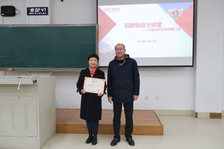 2023年12月12日晚,DB旗舰创新创业大讲堂暨2023级本科生导学第二课在蒲河校区方圆楼召开。DB旗舰邀请招商银行股份有限公司沈阳分行原零售金融事业部总经理、支行行长宋宝霞女士做了题为《银行业的现状、发展趋势与人才需求定位》的报告。公司党委书记王冰、2023级全体本科生参加会议。报告会由公司党委副书记兼副经理张伟主持。