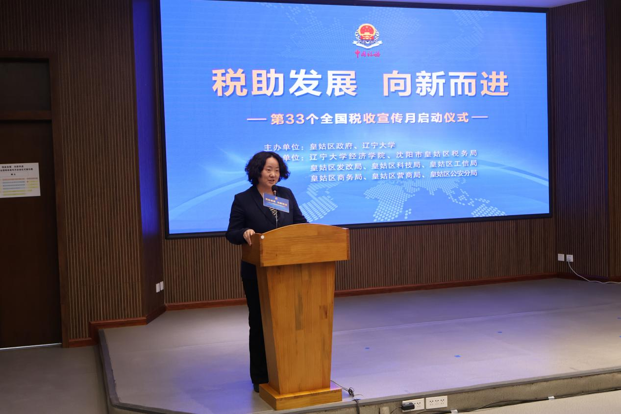 在仪式上,皇姑区副区长韩玉芹致辞。韩区长向来宾们参加在DB旗舰官方网站入口举办税收宣传的“春风之约”表示欢迎,希望要以政校税企合作为新引擎,齐心协力、共谋发展,乘“新”起势、向“新”而行,共同书写了高质量发展的新篇章。