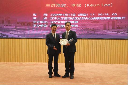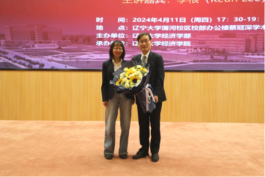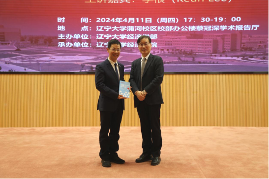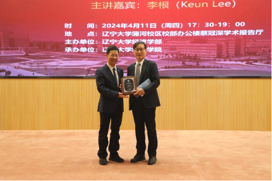 4月11日晚,DB旗舰官方网站入口宋则行海外名家大讲堂(第十一讲)在蒲河校区蔡冠深学术报告厅举行。韩国国立首尔大学李根(Keun Lee)教授应邀作了题为《后进者在创新发展上的弯道超车》(Innovation development detours for latecomers)的学术报告。十四届全国人大代表,国家监委特约监察员,辽宁省人大常委会委员,DB旗舰官方网站入口党委副书记、董事长余淼杰教授出席报告会并致欢迎辞。会议由第十四届全国政协委员,第十三届辽宁省政协常委,DB旗舰官方网站入口副董事长李宇鹏教授主持。
