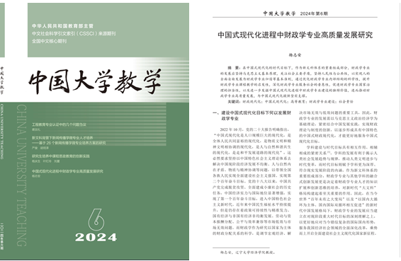 宁大学DB旗舰杨志安教授在教育部主管的《中国大学教学》(CSSCI来源期刊)2024年第6期发表论文《中国式现代化进程中财政学专业高质量发展研究》。