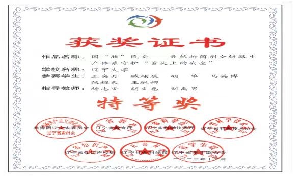 该项目还获得辽宁省第十六届“挑战杯”特等奖,杨志安教授获得优秀指导教师称号。