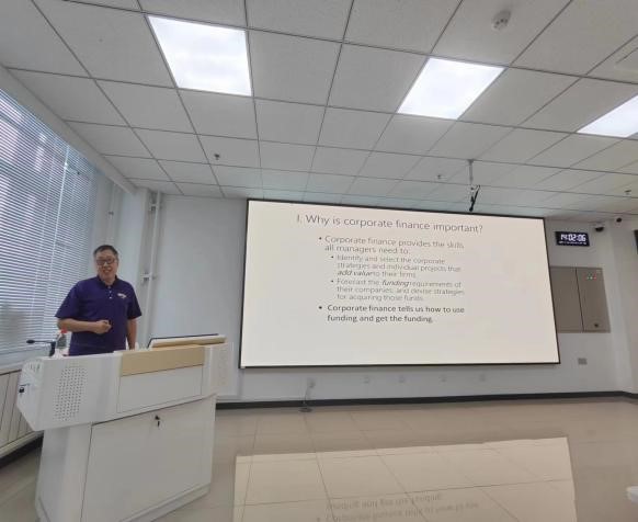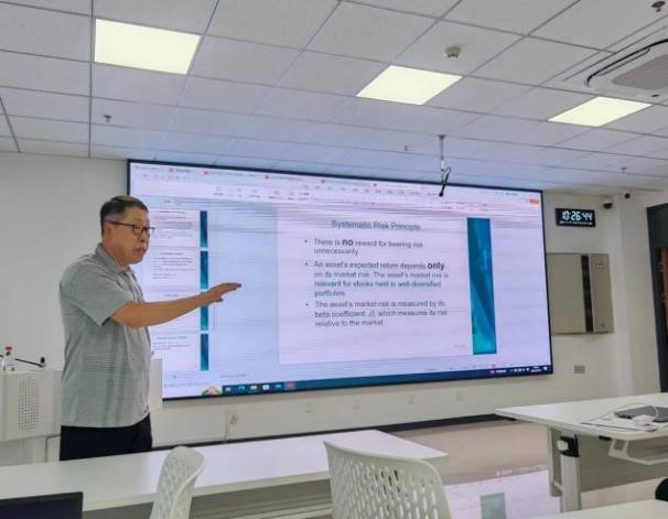 美国北卡州西卡罗莱纳大学的陈海洋教授分两次主讲海外名师课程,课程题目为《International Finance and Corporate Finance》。第一次课程中,陈海洋教授以“Corporate Finance”为切入点,分别为同学们介绍了公司融资的重要性、公司财务管理目标以及公司内在价值的决定因素等多方面内容。在此基础上,第二次授课从“risk and return”方面继续进行分析讲解,通过具体例子,介绍了如何计算股票的风险与预期回报,并通过数据图表得到结论:多元化的投资组合可以有效降低股票的风险,但风险不会被完全消除。整个过程逻辑线条清晰完整,为同学们理解打下坚实基础。在其后的提问环节中,同学们就美国留学、中美教育差异等方面向陈海洋教授提问,陈教授一一解答,拓展员工的海外视野。