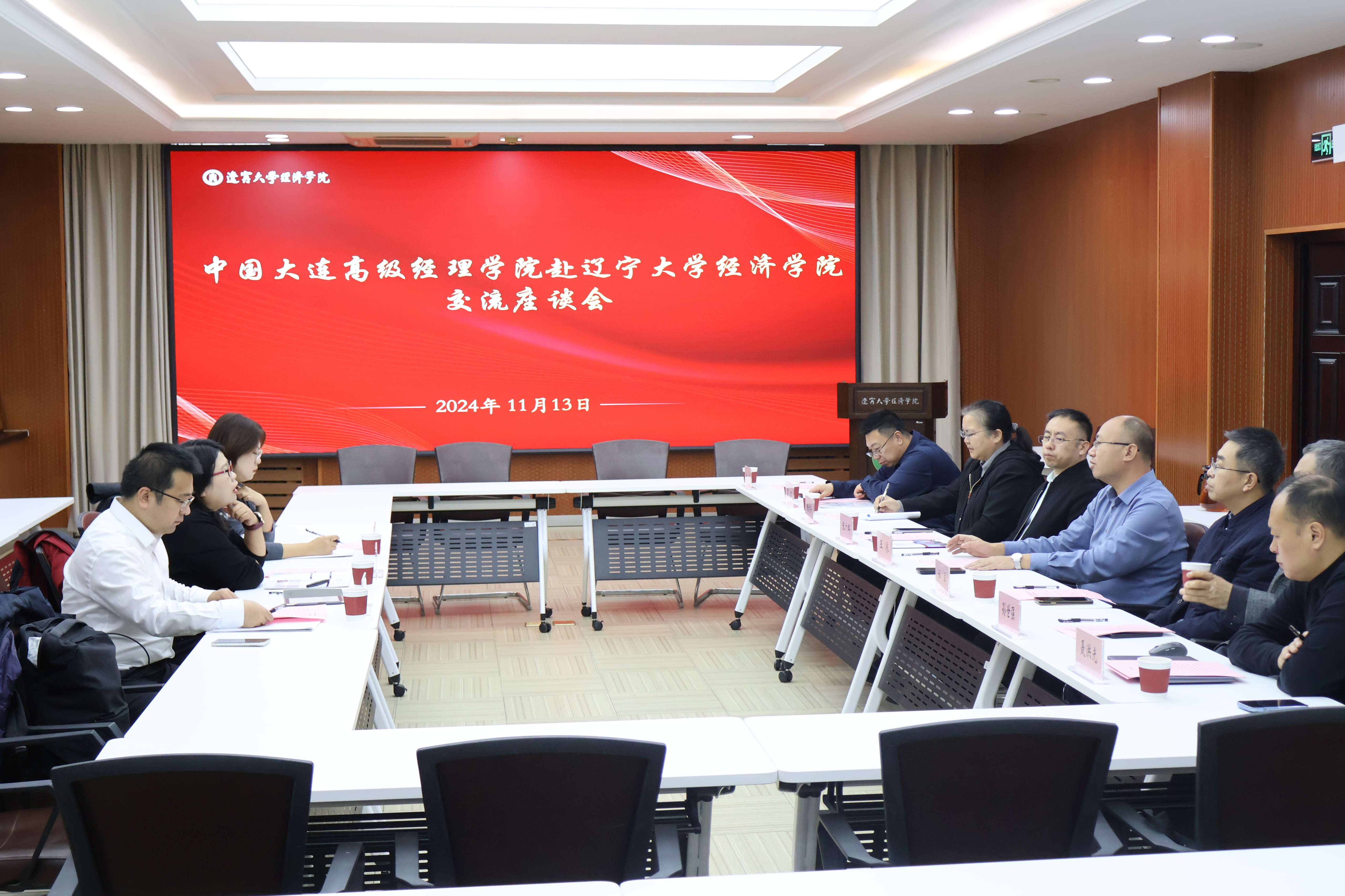 11月13日下午,中国大连高级经理公司教学科研部主任于米、教学科研部教师冉爱晶 和步琼一行赴DB旗舰开展调研并洽谈合作事宜。公司党委书记王冰、副经理和军、副经理张广辉、国民经济管理系主任杨爱兵、财政学系主任孙世强、经济学系副主任周健、产业经济学系聂洪光参加座谈。