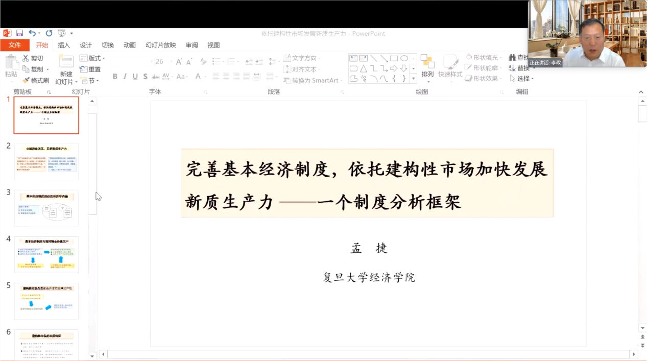 孟捷教授深入探讨了在基本经济制度下,依托建构性市场来发展新质生产力的问题,并结合具体相关案例进行了详细分析。孟捷教授指出,基本经济制度构成了宏观的制度框架,在此架构基础上促进新质生产力的发展;而建构性市场则是基本经济制度的具体实现形态,也是连接基本经济制度与新质生产力的制度中介,并且它是与一系列重要制度相结合而发展的。孟捷教授对基本经济制度的政治经济学内涵进行了剖析。他表示基本经济制度在纵向层面包含公有制、非公有制经济共同发展以及按劳分配、按要素分配;在横向方面则体现为市场机制与国家经济治理的相互关联,它们之间存在区别与联系。在对社会主义基本经济规律和有计划比例发展规律进行梳理的基础上,孟捷教授提出了国家协调和建构市场的规律,并且指出建构性市场是基本经济制度的具体实现形态。同时,进一步概括了建构性市场的主要特点,其一是国家经常作为特殊的当事人,在市场内部发挥重要作用,持续引导市场发展、调节分工;其二是国家将符合其发展战略的使用价值目标引入市场,通过某种激励机制使之与企业追求的价值目标相结合,并使前者最终居于相对主导地位。随后,孟捷教授通过高铁和新能源汽车的案例具体分析指出,国家在有组织的市场协调分工,承担不确定性,建构性市场的发展开启了制度创新的过程,有利于形成新型生产关系,加快新质生产力的发展。最后孟捷教授强调了基本经济制度作为社会主义初级阶段的制度“硬核”,在制度变迁中具有包容性,为新质生产力的发展创造制度环境。
