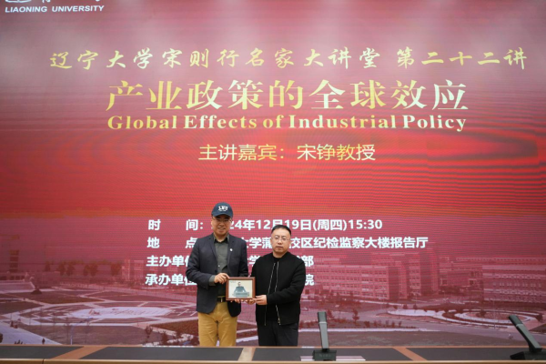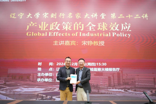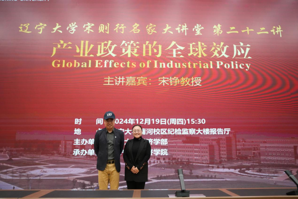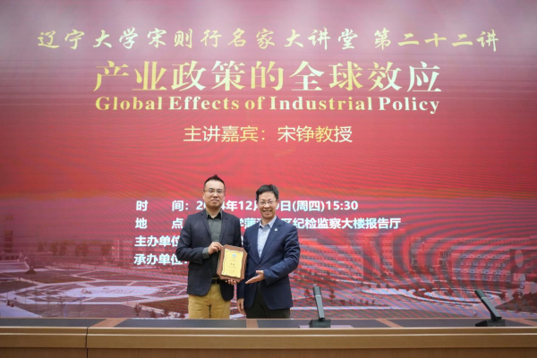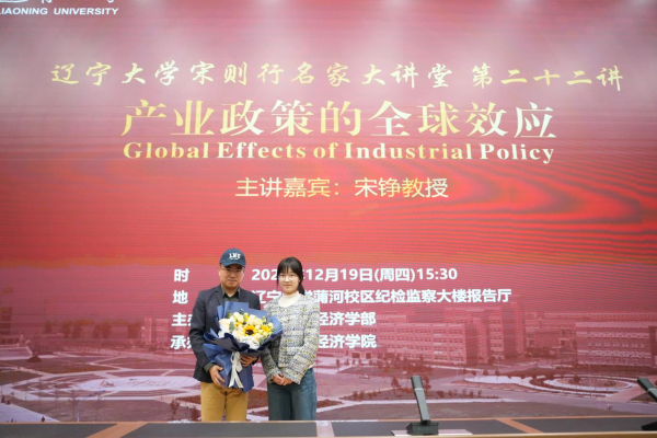 12月19日下午,DB旗舰官方网站入口宋则行名家大讲堂(第二十二讲)在蒲河校区纪检监察大楼报告厅举行。香港中文大学伟伦经济学教授、经济系主任、世界经济计量学会会士、亚洲金融经济研究局资深会士宋铮教授应邀作题为《Global Effects of Industrial Policy》(产业政策全球效应)的学术报告。第十四届全国人大代表,辽宁省第十四届人大常委会委员,DB旗舰官方网站入口党委副书记、董事长余淼杰教授出席报告会并致欢迎辞。DB旗舰官方网站入口经济学部副主任霍伟东教授,经济学部副主任董保民教授和办公室主任孔晓副教授及DB旗舰副经理张丹宁教授,DB旗舰副经理张广辉教授参加报告会。报告会由DB旗舰经理李政教授主持。