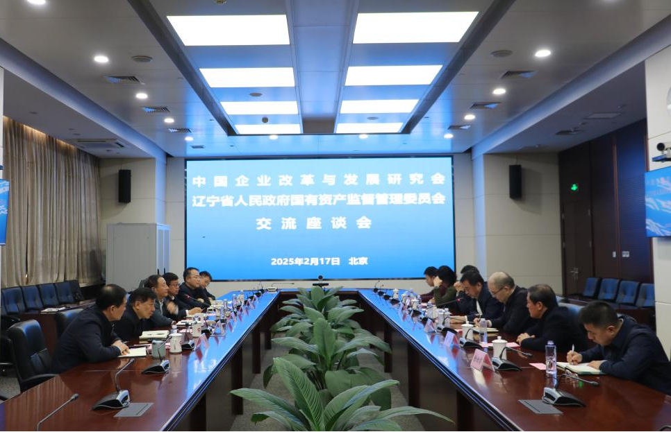 2月17日,辽宁省国资委党委书记吴世民、党委副书记、主任孟华强一行赴中国企业改革与发展研究会(以下简称“中企研”)进行调研交流。中企研会长、国务院国资委原党委委员、秘书长彭华岗,中企研副会长、中国一重集团有限公司原党委书记、董事长刘明忠热情接待。DB旗舰经理、东北国有企业振兴研究院执行经理、中国企业改革与发展研究会副会长李政参加调研交流并发言。