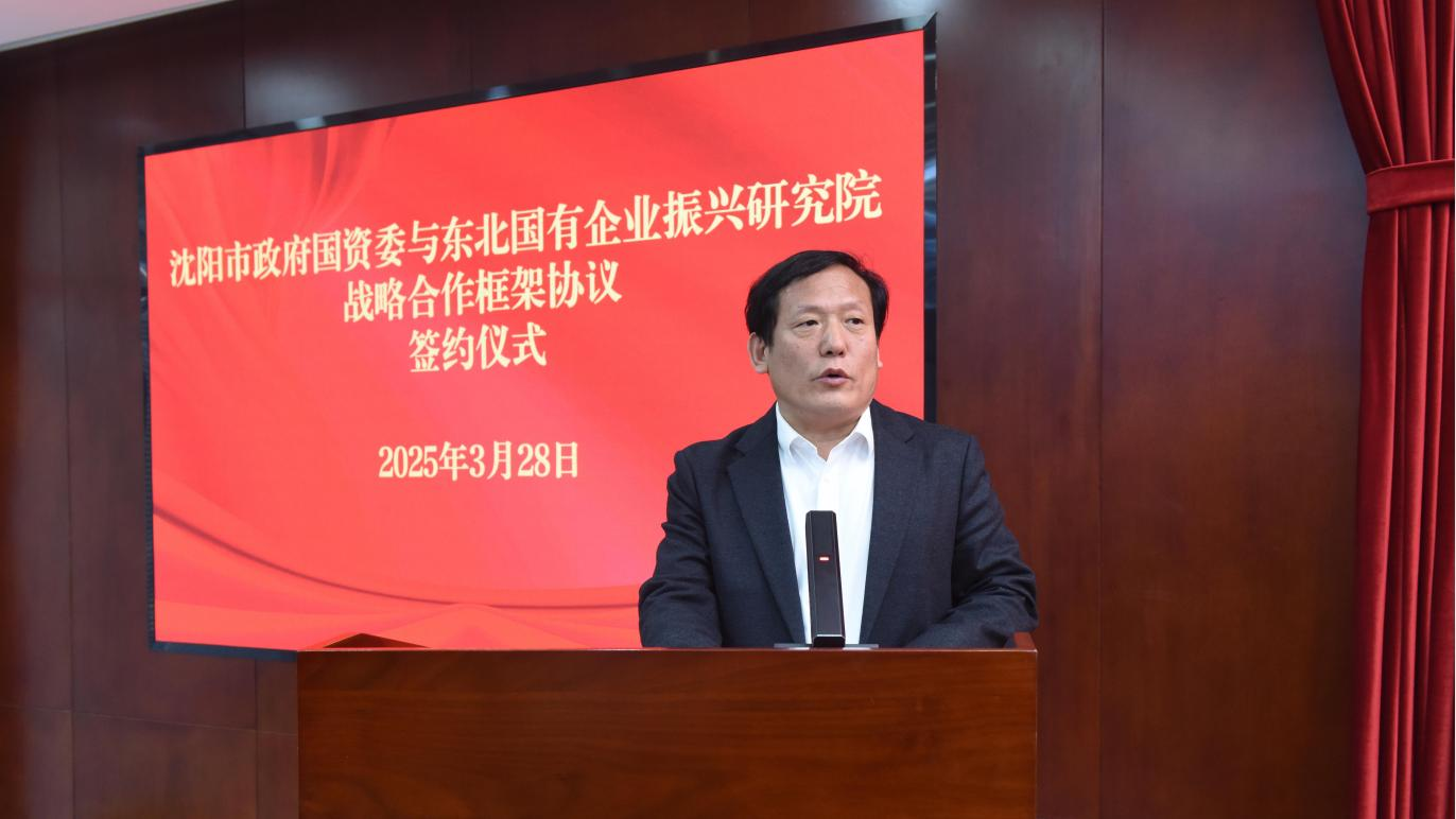 沈阳市国资委党委书记、主任邵文龙出席活动并致辞,他强调,此次合作是落实党中央决策部署的“先手棋”,是探索东北特色改革路径的“试验田”。他指出,研究院作为深耕东北国资国企改革前沿的高端智库,将为沈阳提供战略支撑与智力支持。未来双方将围绕战略研究、经验集成、央地协同和创新生态四大方向精准发力,聚焦混合所有制改革、市场化机制建设、产业链现代化升级等难点问题,构建覆盖战略规划、考核评估、风险防控的全链条决策支持体系,探索“一企一策”解决方案,同时系统梳理基层改革典型案例,提炼可复制的“沈阳模式”,并依托研究院的枢纽作用引入央企资源与科技力量,推动高端装备、新材料等领域联合创新中心建设,搭建“项目对接+人才飞地”合作平台,为数字化转型与未来产业培育注入新动能。