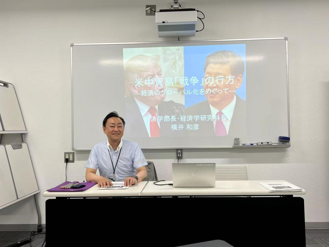 访问期间,李政教授还参加了由周南公立大学经济经营学部举办的主题为中美“贸易战”回顾与展望的小型学术交流活动,日本同志社大学经济学学部长横井和彦教授做了题为“中美贸易战的去向:围绕经济全球化视点”的报告,他全面回顾了中美贸易冲突发展的过程,通过翔实的数据和资料分析了中美贸易争端中两国的策略和效果,指出中国的优势明显并且应对合理,认为今后应该通过谈判,实现可控的全球化,从而达到互利双赢。李政教授对横井教授的学术观点给予高度评价,与周南大学经济经营学部卫娣老师、日本同志社大学李翔宇老师等就横井和彦教授的精彩学术报告进行了热烈的讨论。