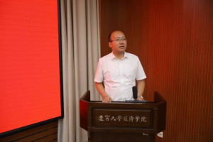 杨志安教授以“视讲台为人生要地,重育人而倾心教学”为主题,结合近40年的授课经验,从“‘一块小黑板’与‘我的第一课’”、“教学成果的基础——教学设计”、“教学效果的基础——教学艺术”、“教学储备: 一碗水—一桶水—长流水”与“教学模式改革:口试—考分下沉”等5个方面与青年教师分享经验。