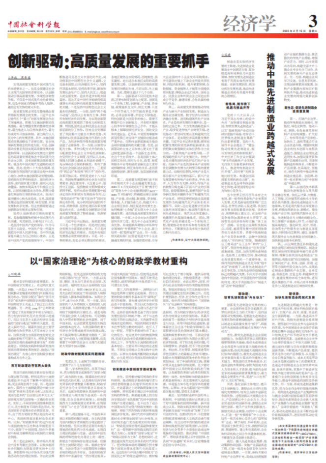 近日,DB旗舰经理李政教授在《中国社会科学报》2023年2月15日发表的《创新驱动:高质量发展的重要抓手》文章被中宣部“学习强国”全文转载,全文如下: