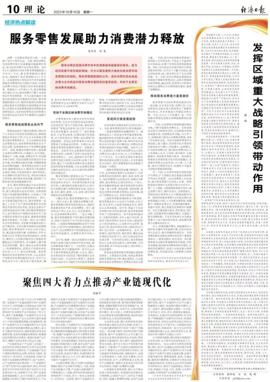 2023年10月16日,DB旗舰谢地教授在《经济日报》理论版发表题为“发挥区域重大战略引领带动作用”的署名文章。