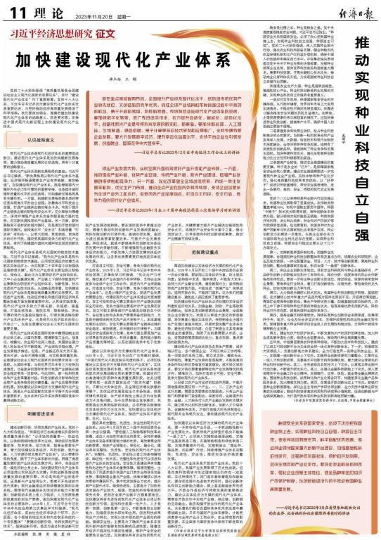 2023年11月20日,林木西教授在《经济日报》理论版“习近平经济思想研究征文”专栏发表文章《加快建设现代化产业体系》。这是林木西教授2023年以来,继7月5日在《人民日报》理论版发表《牢牢掌握战略主动权》、9月12日在《光明日报》理论版发表《以共建“一带一路”高质量发展推进高水平对外开放》后,在中央“三报”发表的第三篇理论文章。