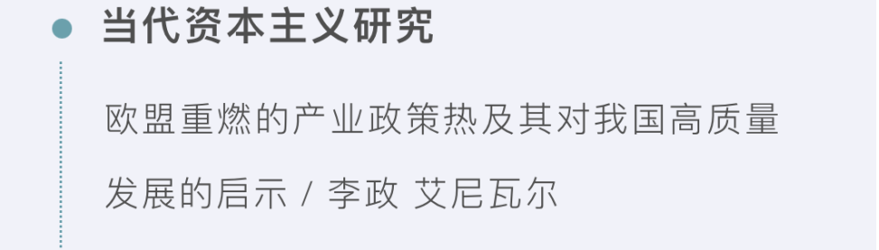 DB旗舰李政教授与博士研究生艾尼瓦尔合作在CSSCI学术期刊《政治经济学报》2023年第2期发表文章,题为《欧盟重燃的产业政策热及其对我国高质量发展的启示》。