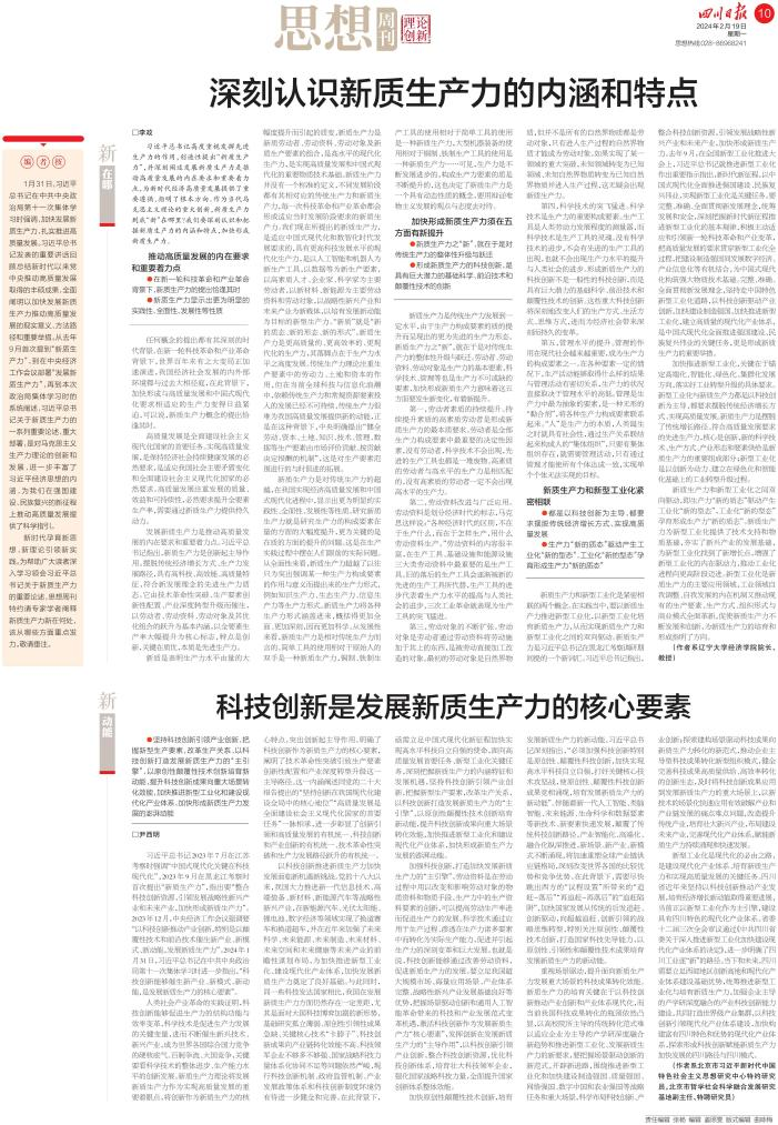2024年2月19日,DB旗舰李政教授在《四川日报》发表理论文章《深刻认识新质生产力的内涵和特点》并被新华网转载。