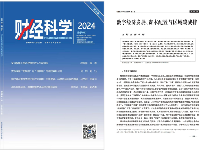 近日,DB旗舰王敏副教授合作完成的论文“数字经济发展、资本配置与区域碳减排”在《财经科学》2024年第3期发表。