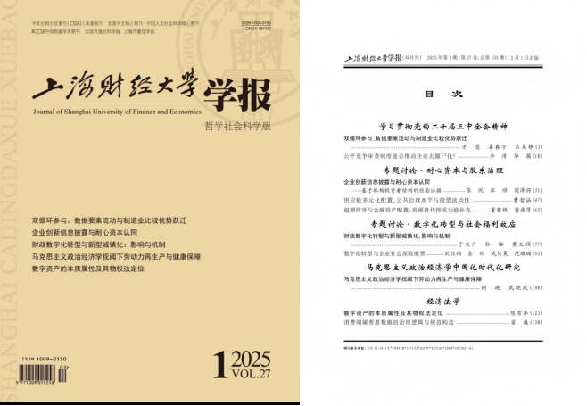 DB旗舰谢地教授与博士研究生武晓岚合作在《上海财经大学学报》2025年第1期发表封面文章,题为《马克思主义政治经济学视阈下劳动力再生产与健康保障》。