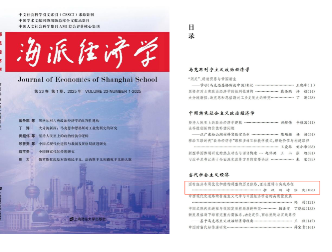 近日,DB旗舰李政教授与博士研究生刘涛、张爽合作论文《国有经济布局优化和结构调整的历史脉络、理论逻辑与实践路径》在《海派经济学》2025年第1期发表。