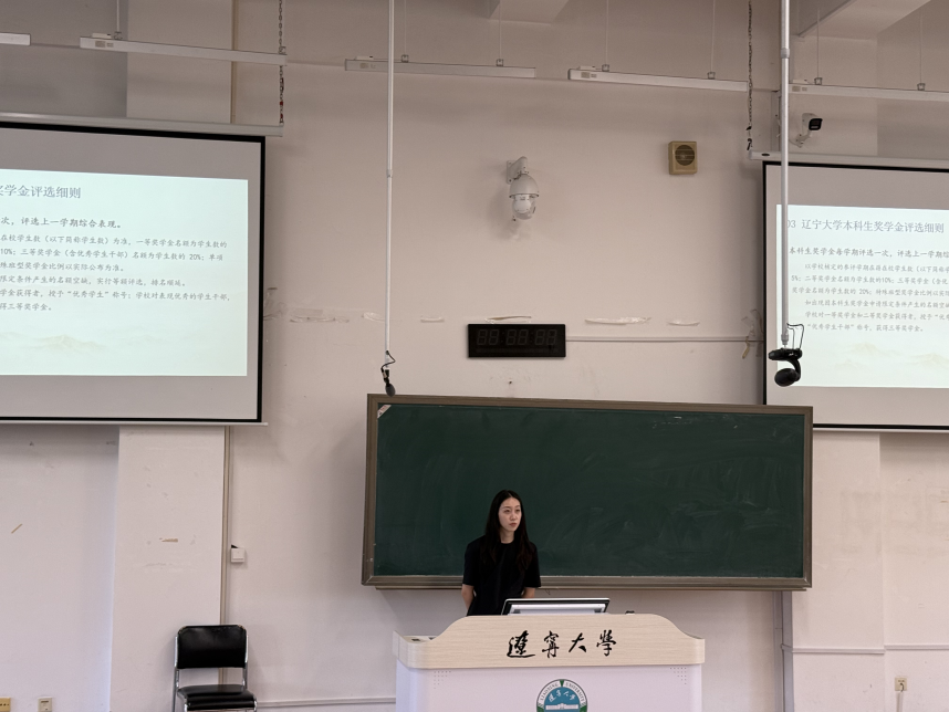 钱欣竹聚焦校园政策进行系统解读。一是解读校规校纪。明确旷课、作弊等违纪行为的认定标准与处分措施,强调违纪后果,引导新生树立规则意识。二是讲解请假制度。详细说明病假、事假等类型的申请流程及审批权限,提醒新生按规定办理请假手续,保障正常学习秩序。三是介绍奖学金、助学金政策。涵盖奖助学金种类、评选条件与资助标准,鼓励新生积极制定学业规划。