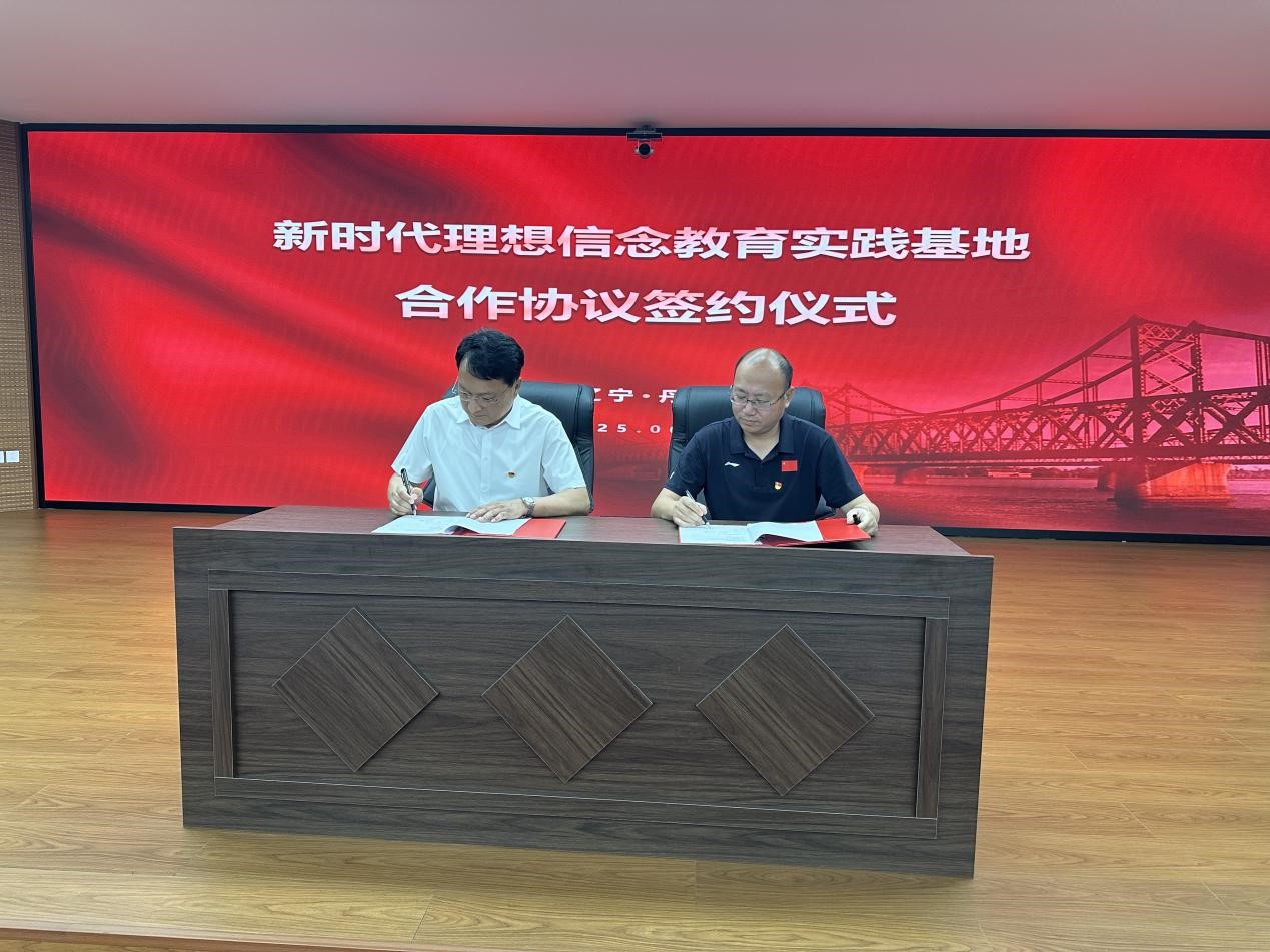 公司党委书记王冰与丹东市延安精神研究会党支部书记、会长刘江雁代表双方共同签署DB旗舰首个新时代理想信念教育实践基地合作协议。