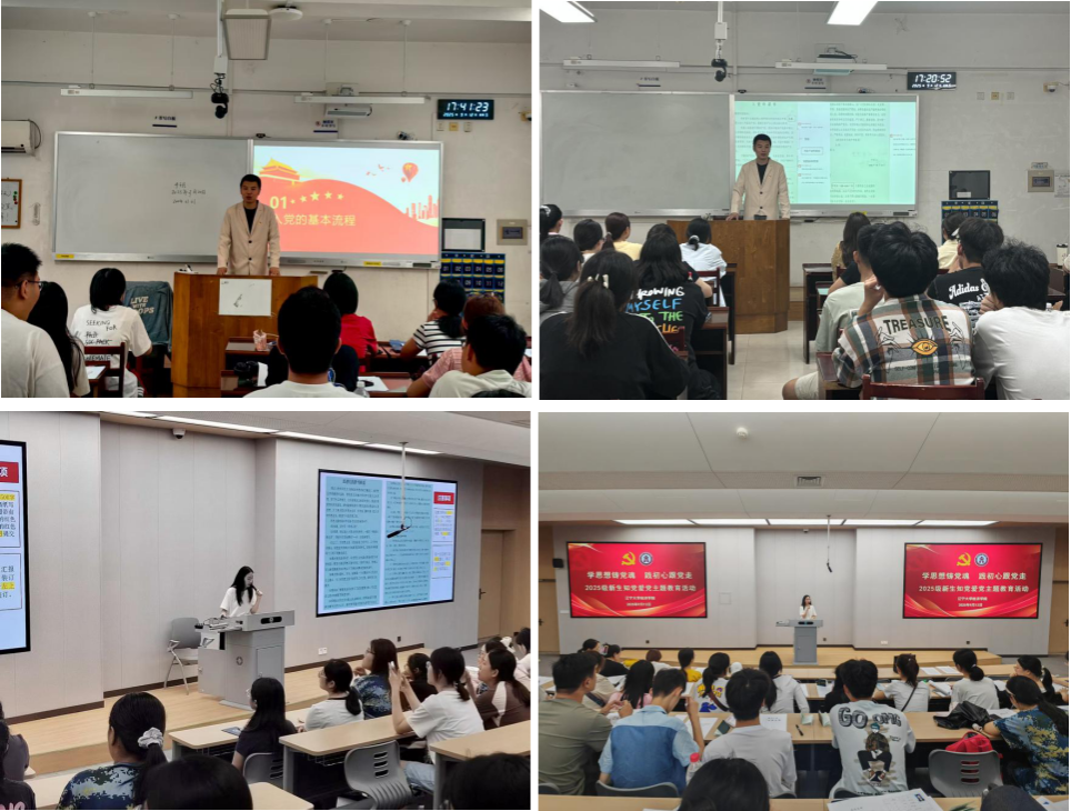 会上,辅导员高昂、钱欣竹为新生全面解读党员发展工作流程与规范要求,针对入党申请书和思想汇报的撰写要点进行细致指导,帮助员工明晰入党路径与努力方向。他们向2025级新生提出三点要求:一是要端正入党动机,以赤诚之心锚定信仰方向。要求同学们要深刻理解入党的本质内涵,树立正确的入党动机,真正做到思想上、行动上始终同党中央保持高度一致。二是要加强理论修养,以求知之志筑牢思想根基。要求同学们要主动深入学习党章党规、党的二十大报告及习近平新时代中国特色社会主义思想,不断提升政治判断力、政治领悟力和政治执行力。三是要主动担当作为,以务实之行践行初心使命。要求同学们要积极参与政治学习、志愿服务和社会实践活动等,在实践中不断锤炼党性、增长才干,用实际行动诠释新时代青年党员的使命担当。